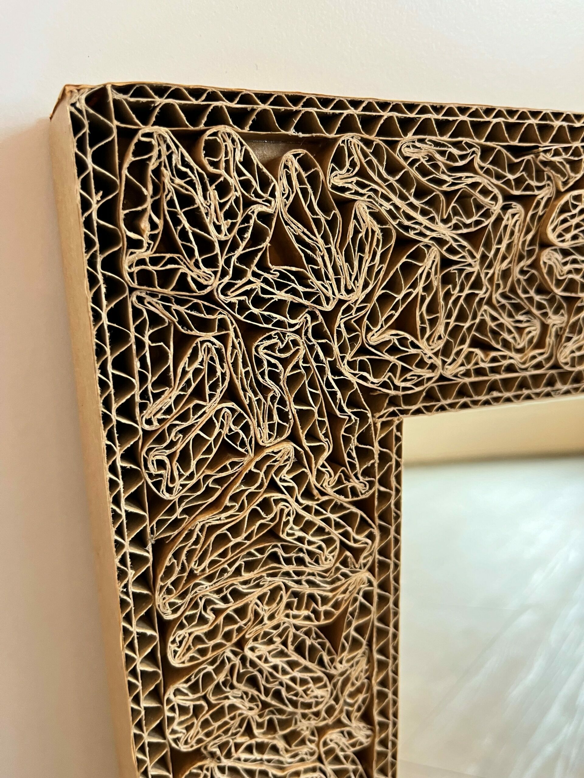 Le carton, matériau humble et vivant, devient sous ses mains une œuvre sculpturale, lumineuse et poétique.